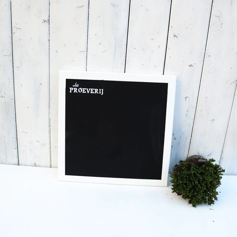 Schicke, stabile Wandtafel in schwarz mit weißem Rand.